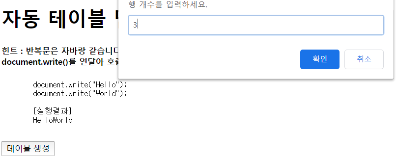 var row = window.prompt("행 개수를 입력하세요.")